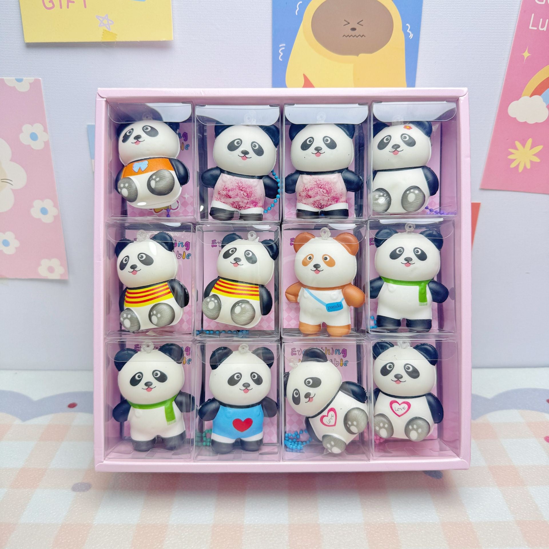 24pcs Mini Slow Rising Squishy Bread/Crybaby/Crybaby/Labubu/Capybara/WAKUKU/Sanrio Keychians Stress Relief Decompression Toy (It Feels Hard)